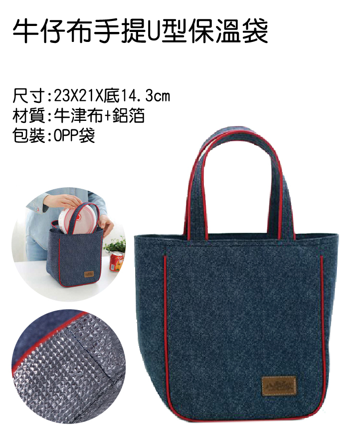 品質優良:牛津布+鋁箔製造的牛仔布手提U型保溫袋
