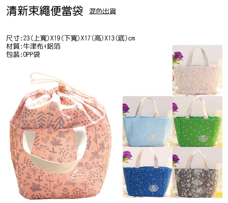 多樣設計:添右企業有限公司提供清新束繩便當袋的多樣化設計
