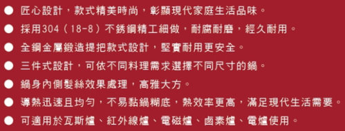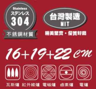 環保產品:使用#304不鏽鋼製造的MIT 不鏽鋼三件式提鍋組