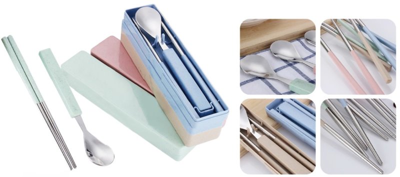 尺寸: 筷子19cm 湯匙:17 c m 盒子20*4.5 c m 材質: 小麥纖維+筷子304湯匙410